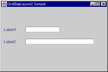 | <GridBagConstraints> | GridBagConstraintsクラスのinsets フィールド を使ってコンポーネント間に隙間をあけることができます。 gbc.insets.bottom = 20; gbc.insets.right = 30; そのほかにもレイアウトを作る多くのフィールドがあります。 |